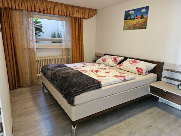 Gemütliche Ferienwohnung mit 2 Schlafräumen (2x Doppelbett, 1x Kinderbett) für 4 Personen, wobei auch noch eine Schlafgelegenheit auf der Couch im Wohnbereich besteht. Die Ferienwohnung ist voll möbliert und bestens ausgestattet. Ein kleiner Garten mit Grotte lädt zum Verweilen ein. Natürlich steht auch ein Parkplatz für Sie zur Verfügung.